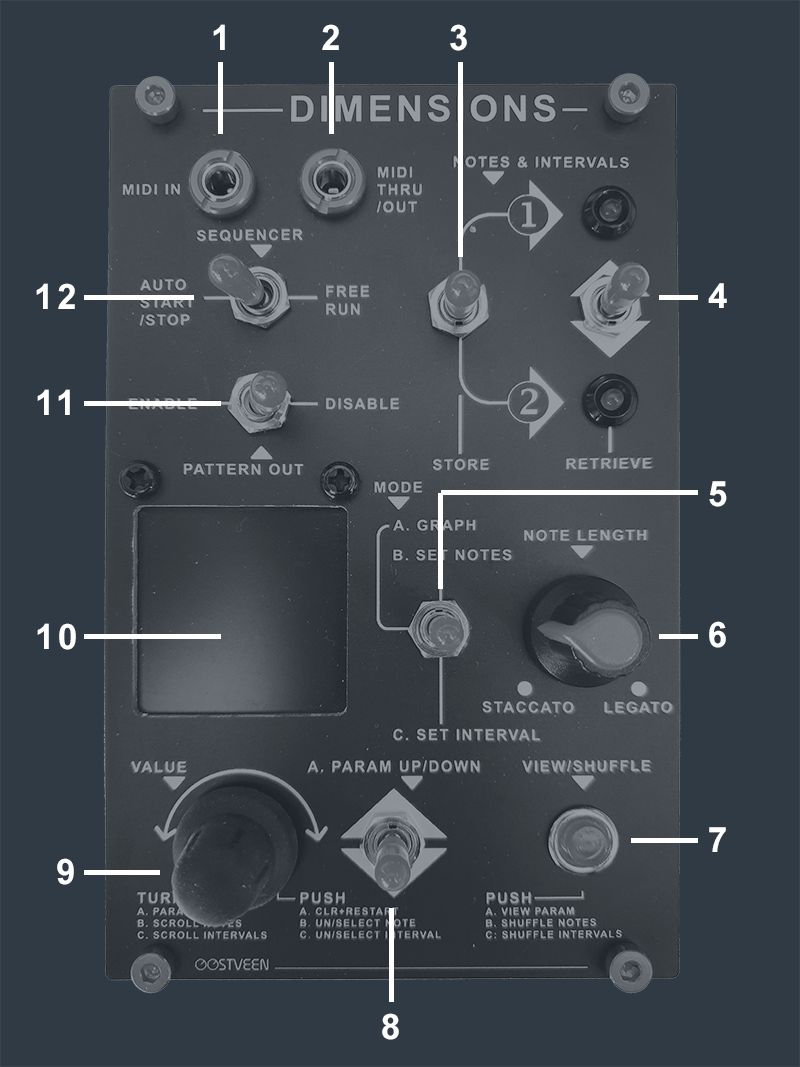 SEQUENCER | AUTO START/STOP / FREE RUN The sequencer can act as a worker so it stops and start in sync with external gear - or the sequencer runs freely (no MIDI start required). NOTE that in FREE RUN, Dimensions restarts when prompted by a MIDI start message.