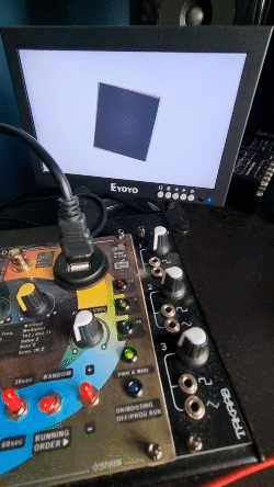 Switch to MODE 4t. In this mode, shaders will react to incoming MIDI (on MIDI channel 10). The "t" in 4t means Trigger. Connect the MIDI out of a keyboard, DAW or drum machine to MIDI in of the Slimshader module.