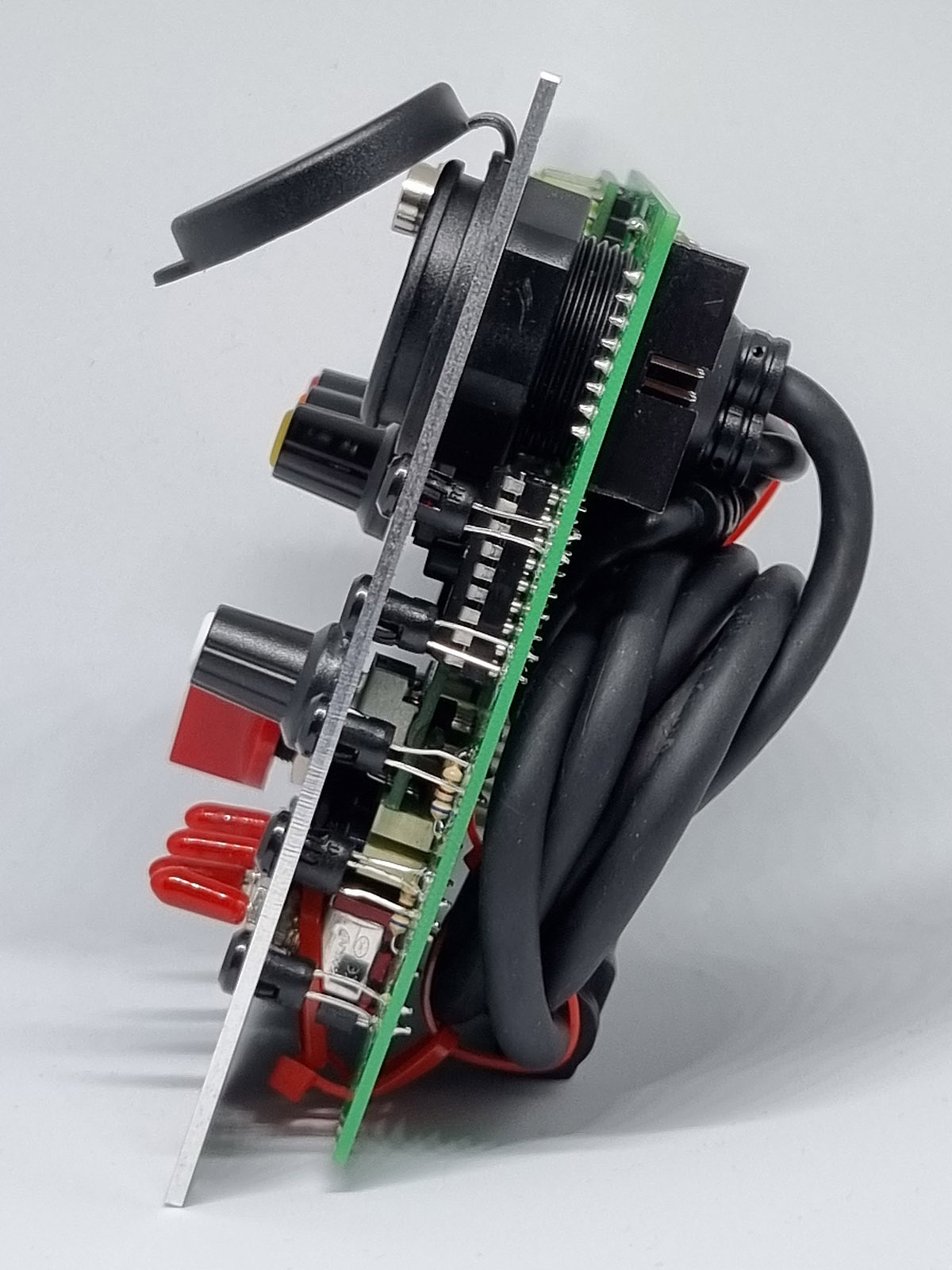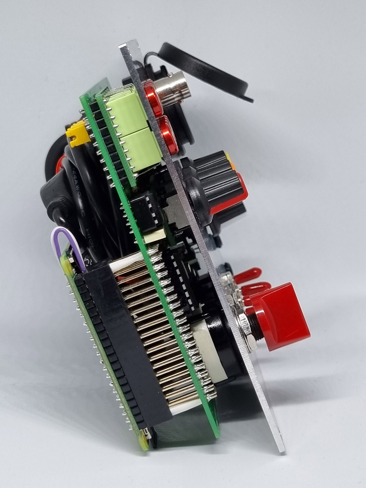 C. Ensure that the enclosure (Eurorack case or desktop enclosure) is NOT powered on. Plug in the power flat-cable. Always support the printed circuit board (PCB) with your fingers when pressing down the 16 pin header socket do avoid accidentally bending/breaking the PCB.