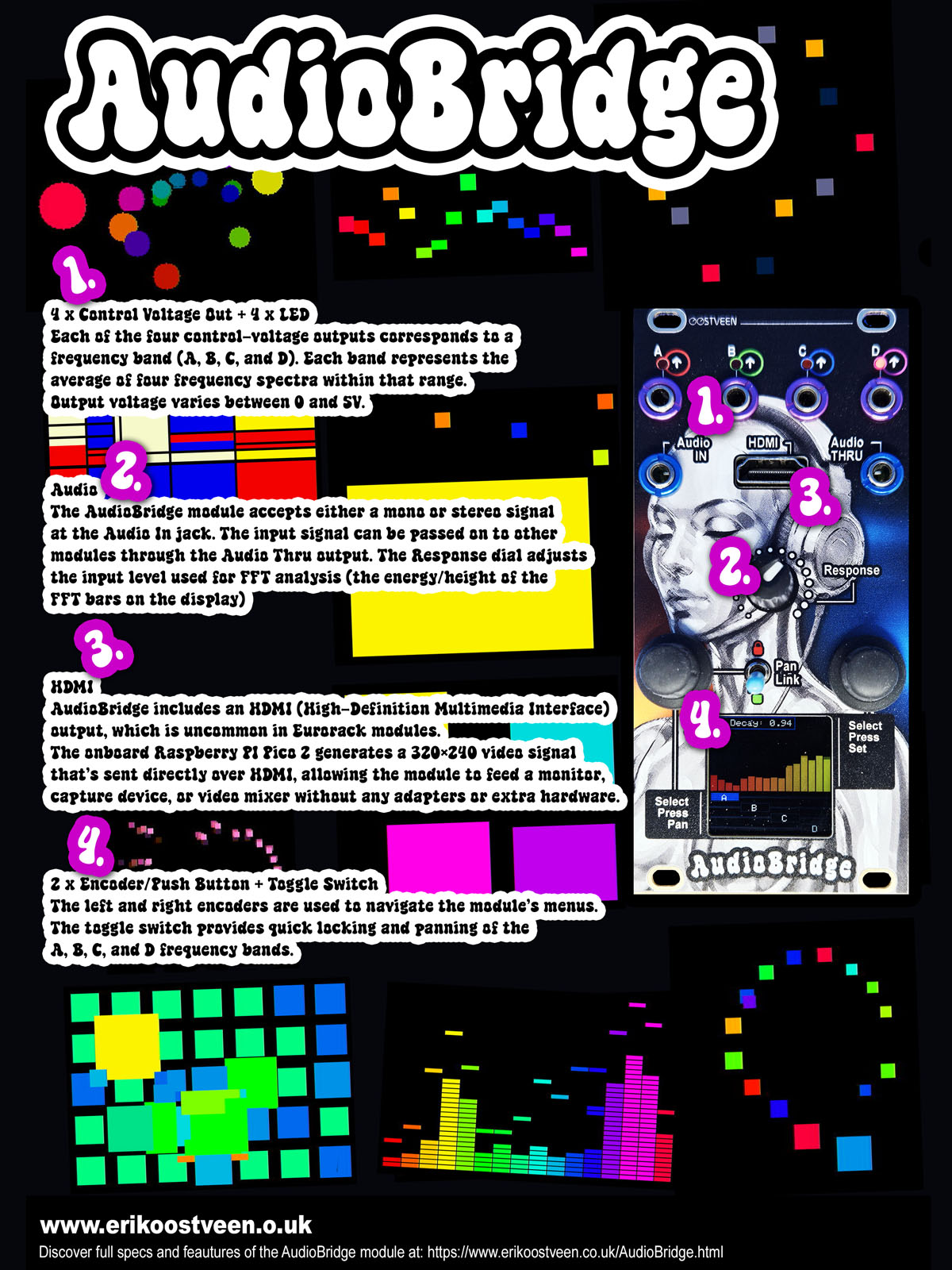 Live jam from The Mashed Swedes, with the AudioBridge module driving the audio-reactive graphics in the background. The projector is running visuals straight from the module’s HDMI output, reacting in real time to the mix. Enjoy the synths, the glitches, and the pixels.