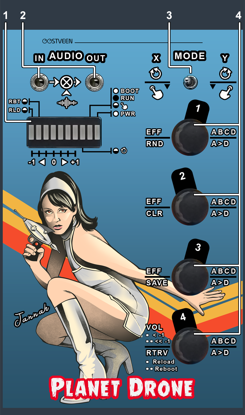 The image below is showing the PLANET DRONE's front panel*.