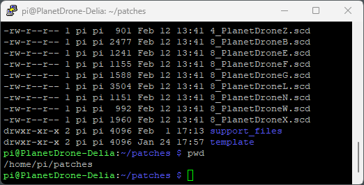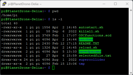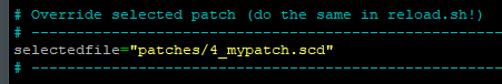 ▪ "selectedfile.txt" This text file contains the name of the last ran patch. It is used by the reload.sh script to avoid selecting the same "random" patch in a row.