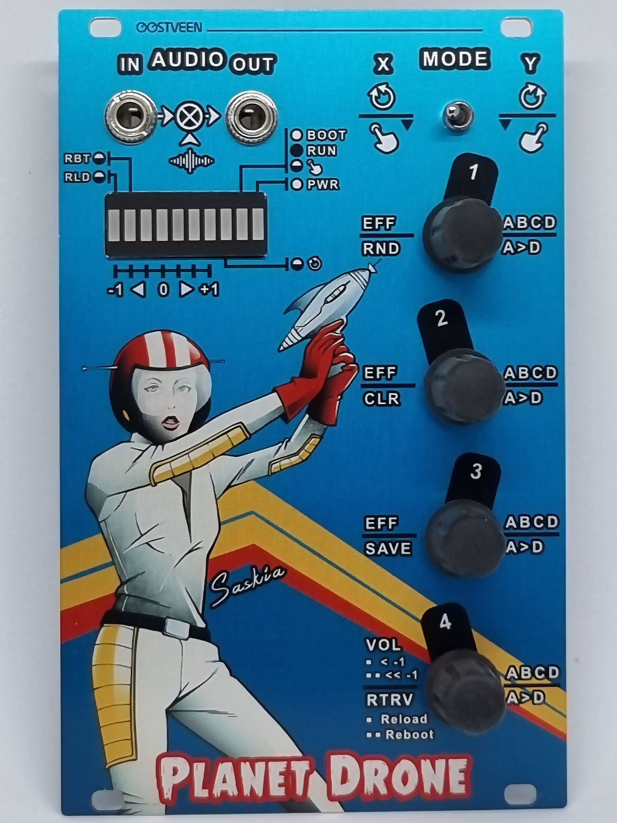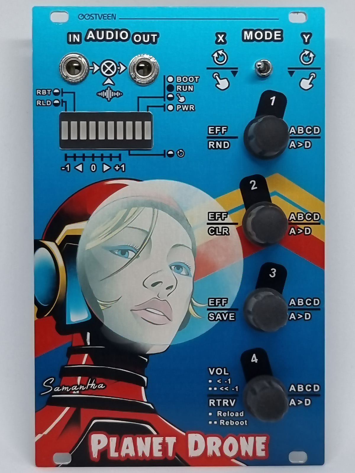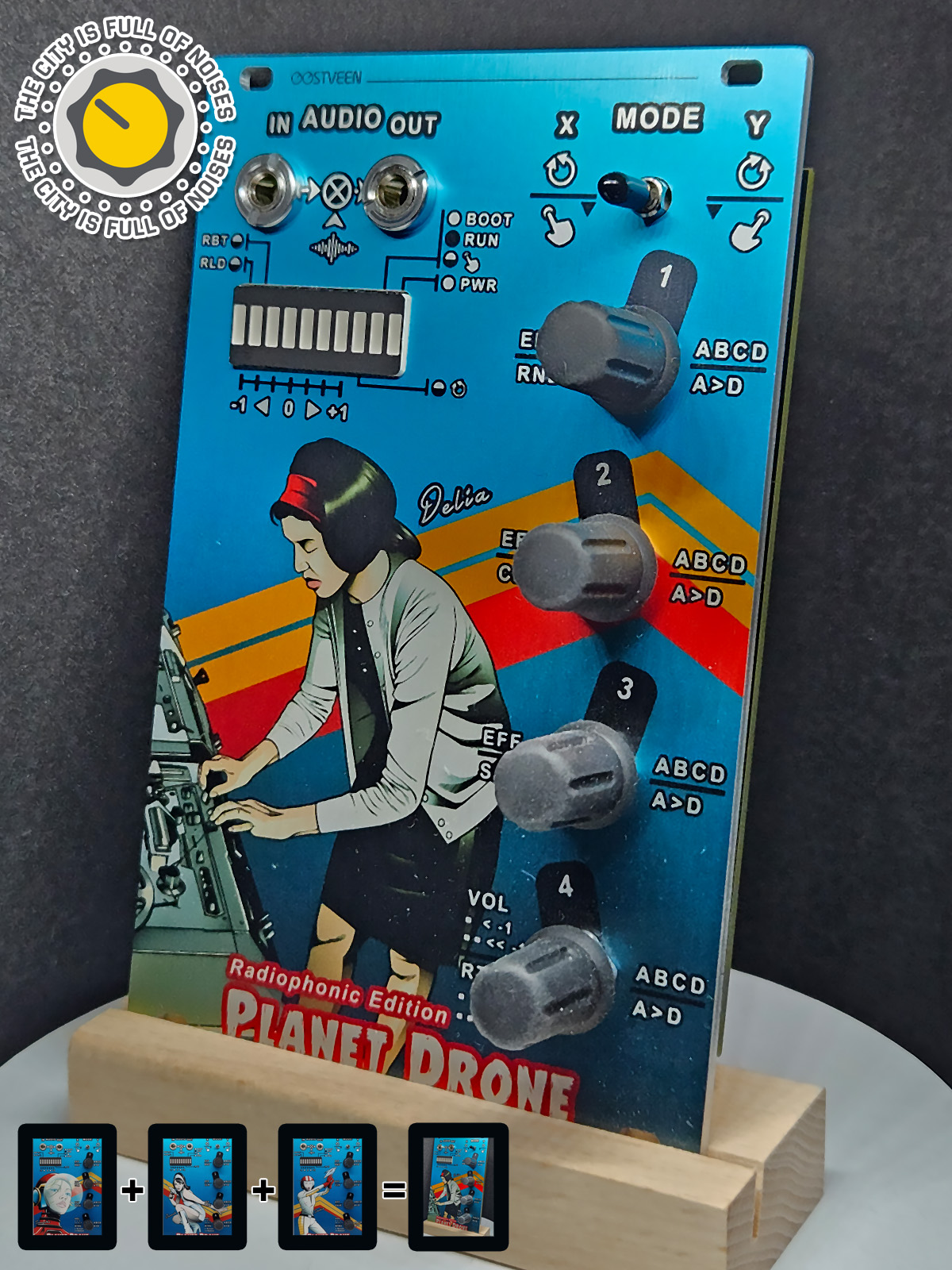 A5: The Delia module is a limited edition version of the Planet Drone series and contains all combined patches of the 3 original modules. I commissioned the character-design for the annual “The City is Full of Noises“ festival (Coventry, UK). This event all about electronic music. It also celebrates the live of the late electronic music pioneer Delia Derbyshire. Coventry is Delia’s place of birth and happens to be my home town.