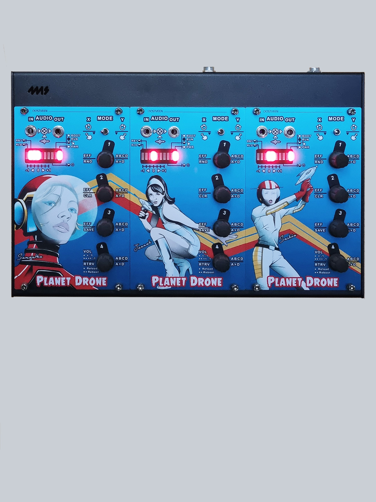 Planet Drone consists of a triad of complementary, electronically-identical, Eurorack modules each wielding a unique set of extraordinary music drones (patches).